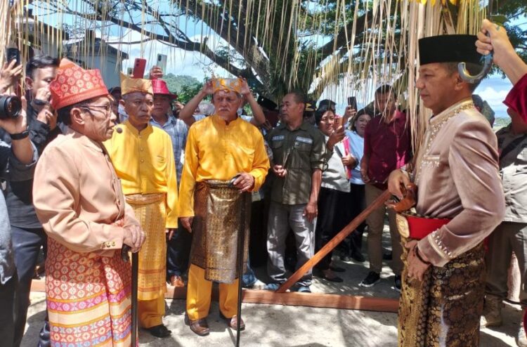 Pj Bupati Jusnan dijemput secara adat yang diawali dengan Itum-Itum dan dilanjutkan dengan tarian Tuitan, sebagai simbol penghormatan serta harapan baik untuk pemimpin baru. Pj Bupati juga disematkan bandang atau salempang, sebagai simbol pengangkatan resmi serta dilaksanakan penyerahan tongkat dari Pj Bupati lama Limi Mokodompit, sebagai tanda pergantian kepemimpinan di Bolmong.
