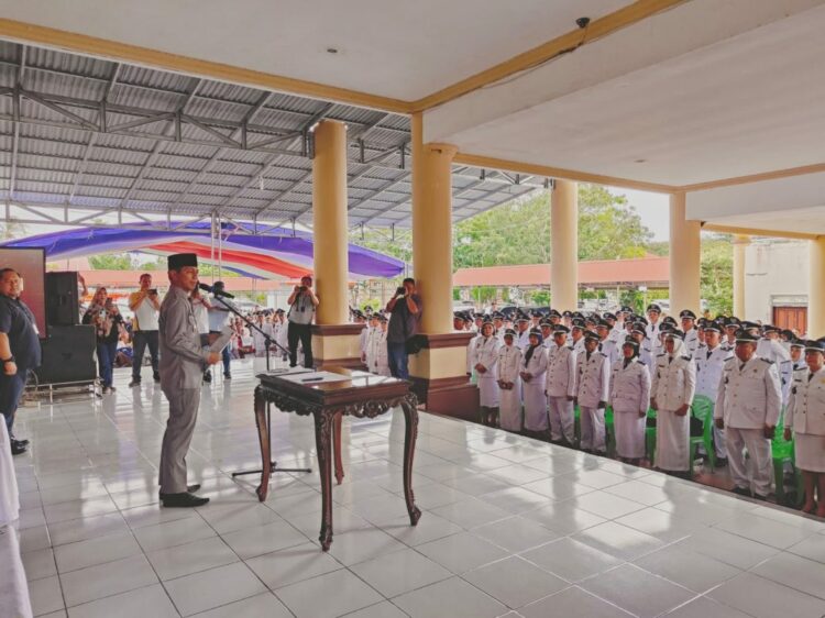 Pj Bupati Jusnan mengukuhkan perpanjangan masa jabatan 193 sangadi .-Diskominfo Bolmong