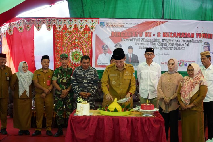 Bupati Iskandar atas nama pemerintah daerah mengucapkan selamat HUT ke-8 untuk Kecamatan Tomini, dan tak lupa menyebut bahwa wilayah ini berdiri dan dimekarkan tidak lain berkat jasa para tokoh pemekaran Bolsel, tokoh adat, tokoh masyarakat serta dukungan dari seluruh masyarakat.