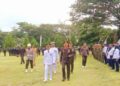 Hadir dalam acara, Wakil Bupati Deddy Abdul Hamid, para perwakilan Kepala Daerah se-Sulut-Gorontalo, Kapolres Indra Wahyu Madjid SIK bersama unsur Forkopimda kabupaten, Danpos TNI-AL, Ketua TP-PKK Ny. Hj. Selpian Kamaru-Manoppo dan Sekretaris Ny. Rosdiana Abdul Hamid-Lapatola, Sekda M. Arvan Ohy SSTP, MAP bersama para pejabat tinggi pratama Pemda, para sangadi dan BPD.