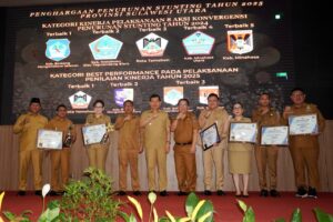 Baklak.news, Bolsel– Kabupaten Bolaang Mongondow Selatan (Bolsel) kembali menoreh prestasi membanggakan di tingkat Provinsi Sulut. Dalam rapat dan evaluasi Tom Koordinasi Penanggulangan Kemiskinan Daerah (TKPKD) Pemprov, kabupaten dan kota, Bolsel berhasil meraih terbaik 1 kategori kinerja pelaksanaan 8 aksi konvergensi penurunan stunting tahun 2024.