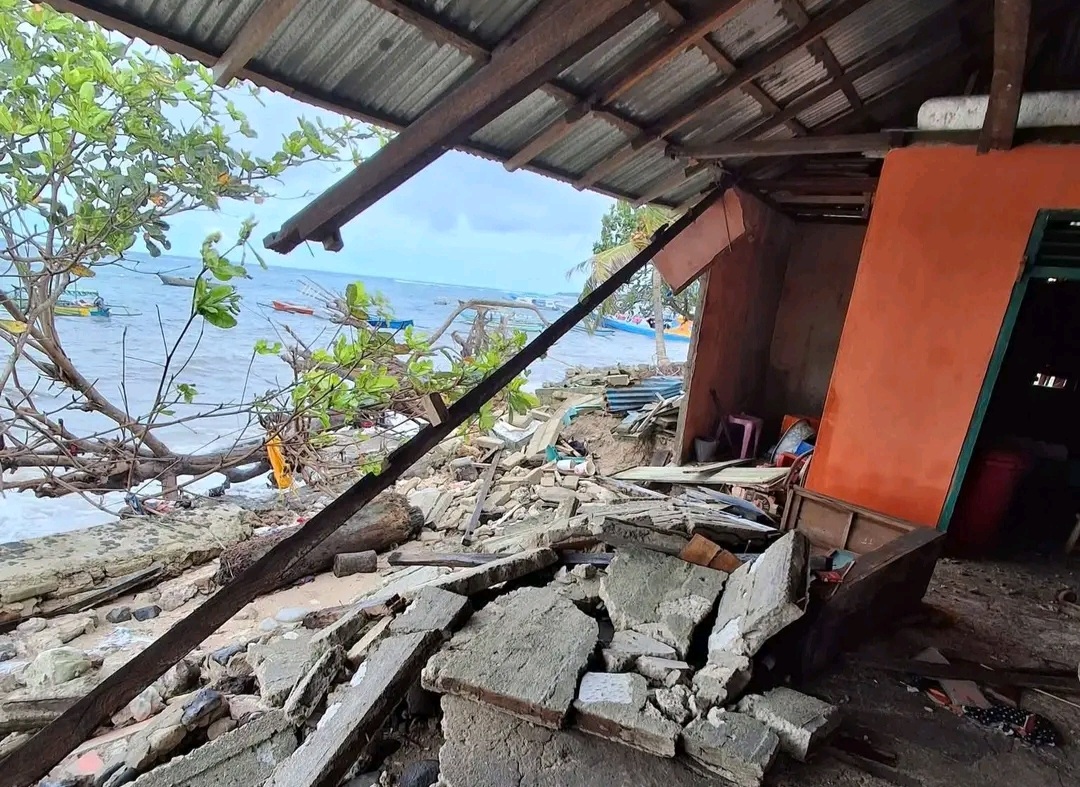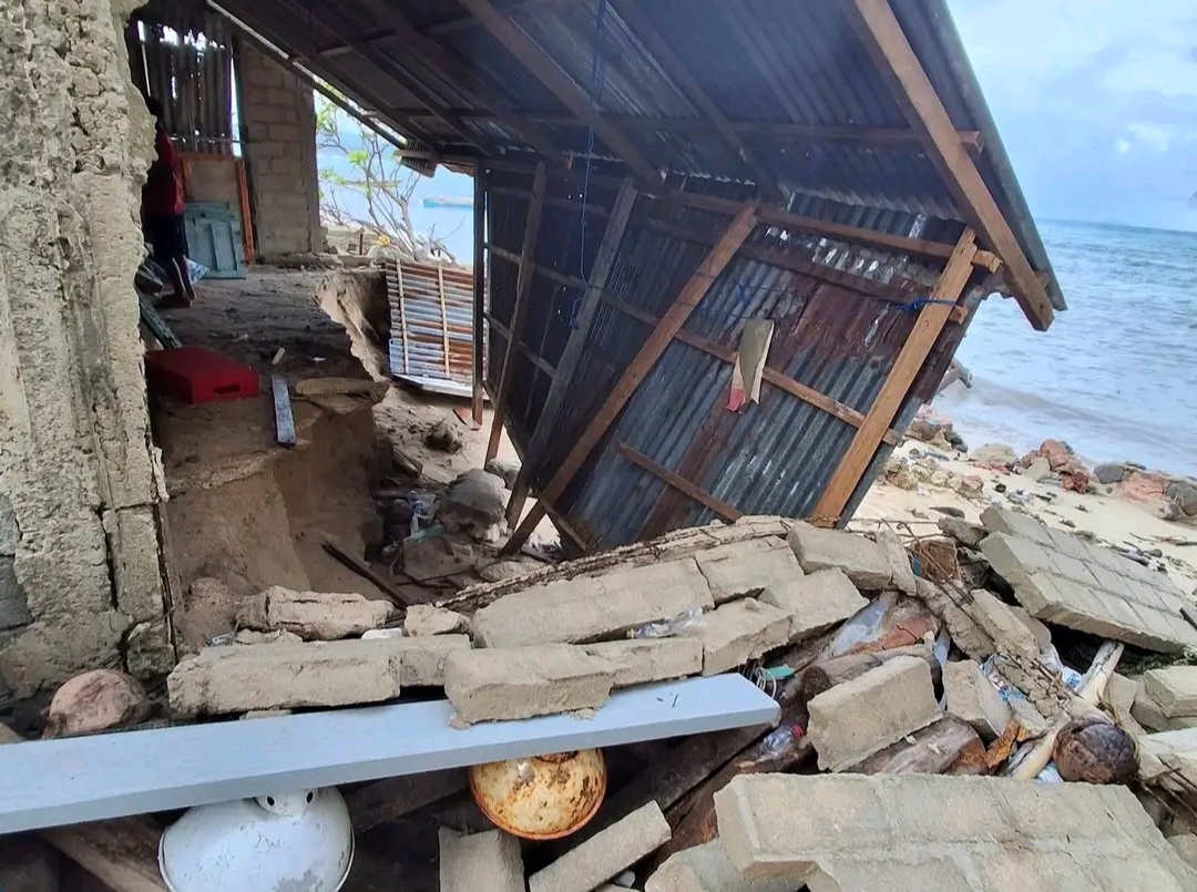 BAKLAK.NEWS, MINUT — Akibat dari angin kencang serta gelombang besar, Selasa 6/1/2026), puluhan rumah di desa Gangga Satu, Kecamatan Likupang Barat, Kabupaten Minahasa Utara (Minut), mengalami kerusakan.