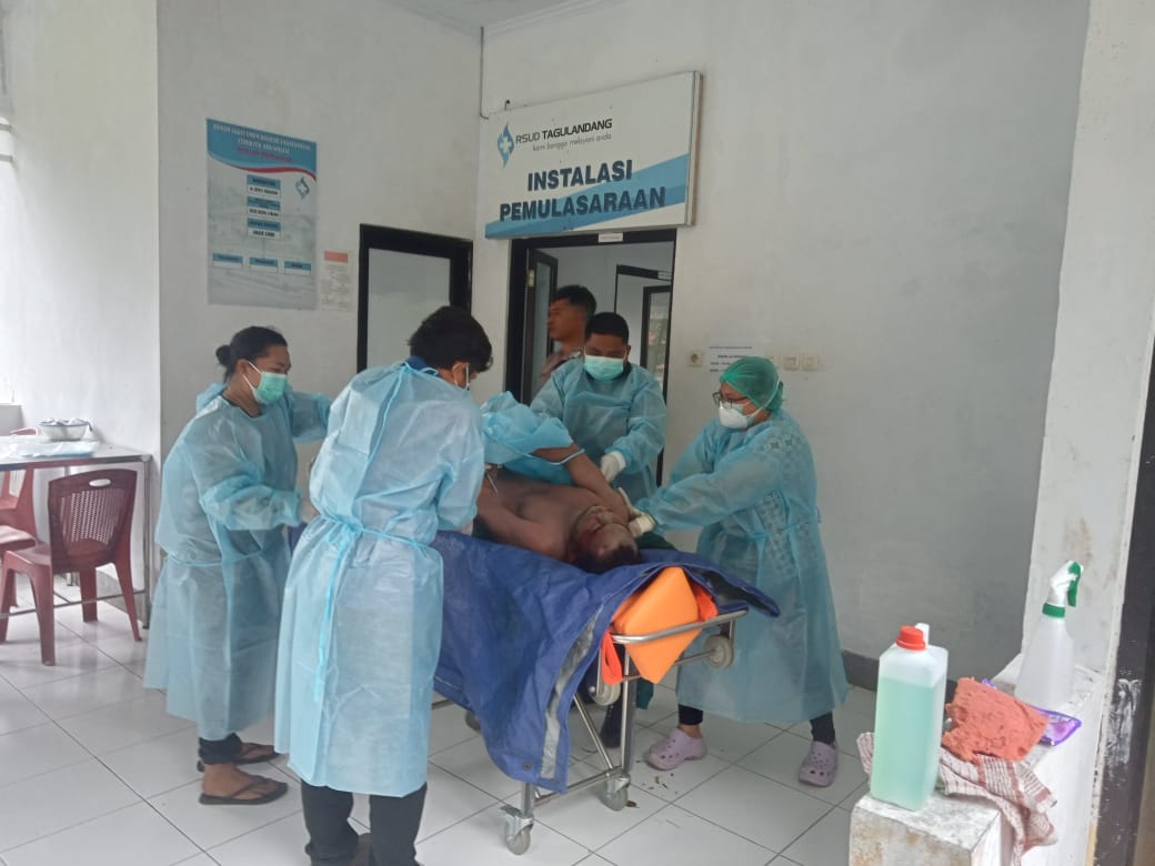 Setelah berhasil diangkat dari lokasi, jenazah dibawa ke RSUD Tagulandang untuk dilakukan pemeriksaan medis luar.